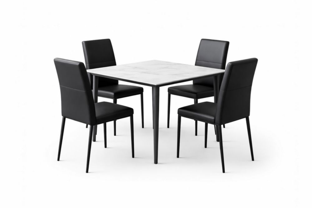 120x80x75cm MDF Dining Table with Marble Pattern & 4 PU Leather Chairs, Steel Frame