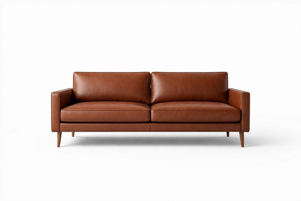 200x85x80cm Brown Polyurethane Leather Sofa with Beech Wood Frame, Non-Removable Cushions