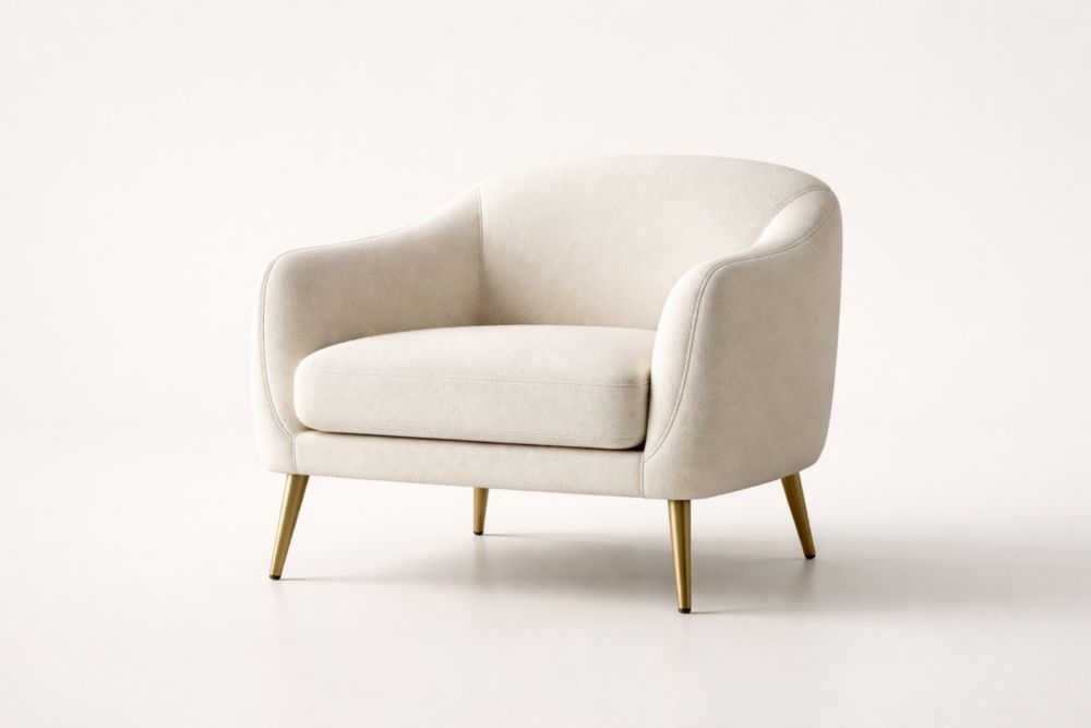Beige Fabric Armchair with Steel Legs 100x90x85 cm