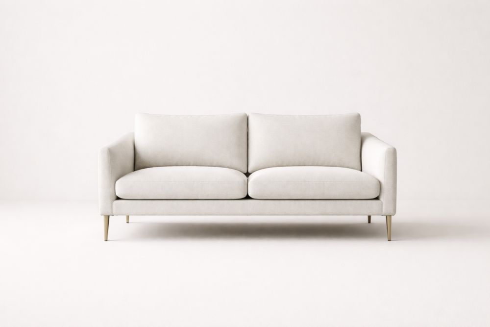 Beige Fabric Two-Seater Sofa with Steel Legs