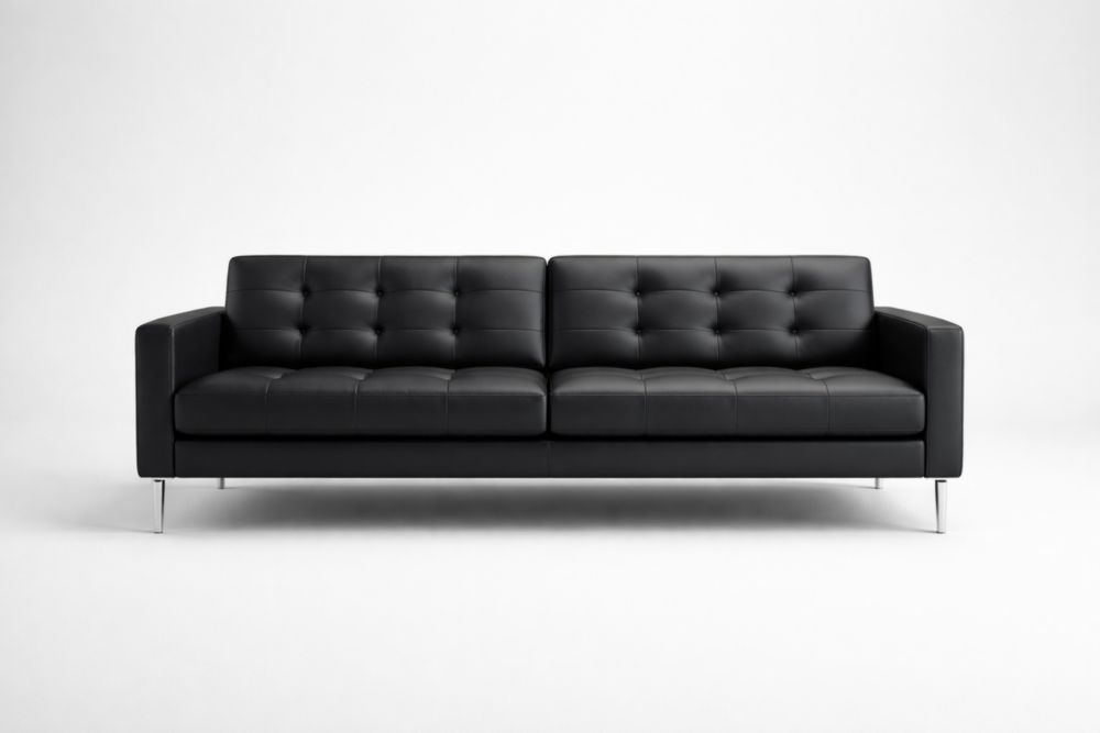 Black Faux Leather Sofa with Stainless Steel Legs