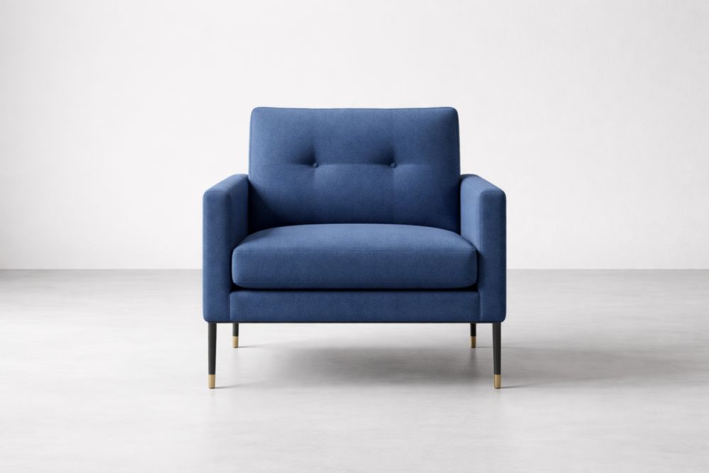 Blue Fabric Armchair with Steel Legs