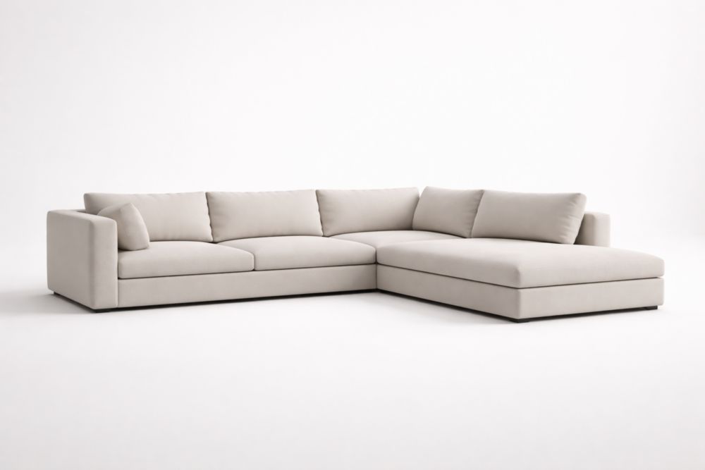 Fabric Upholstered Beige L-Shaped Sectional Sofa 274 cm x 213 cm
