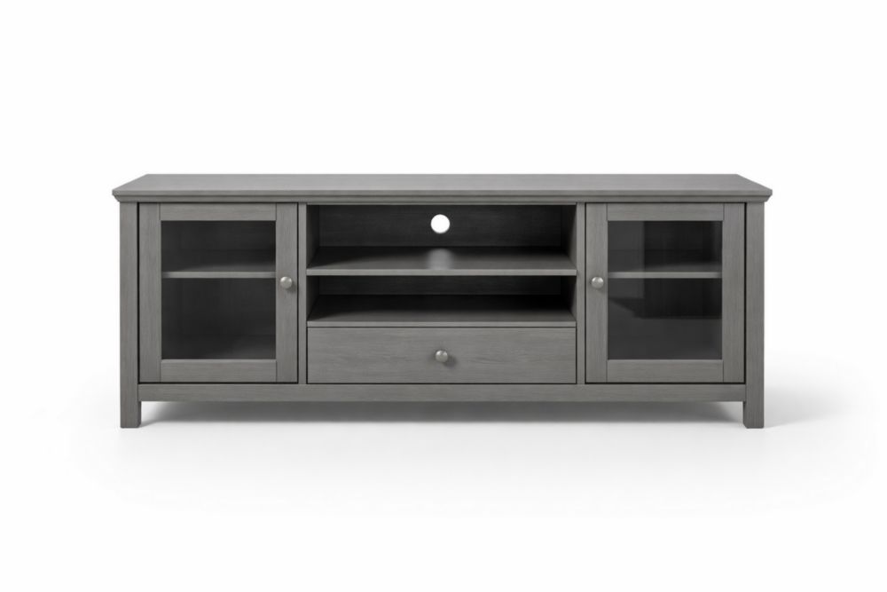 Gray MDF TV Stand with Tempered Glass Doors and Shelves