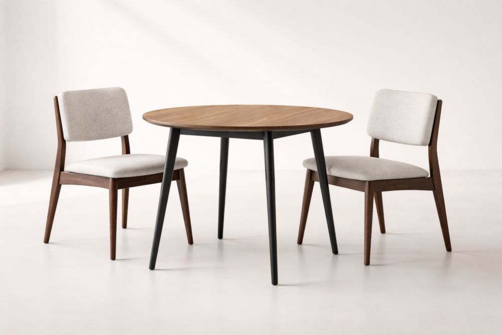 Round 100cm Walnut Dining Set with Fabric Chairs