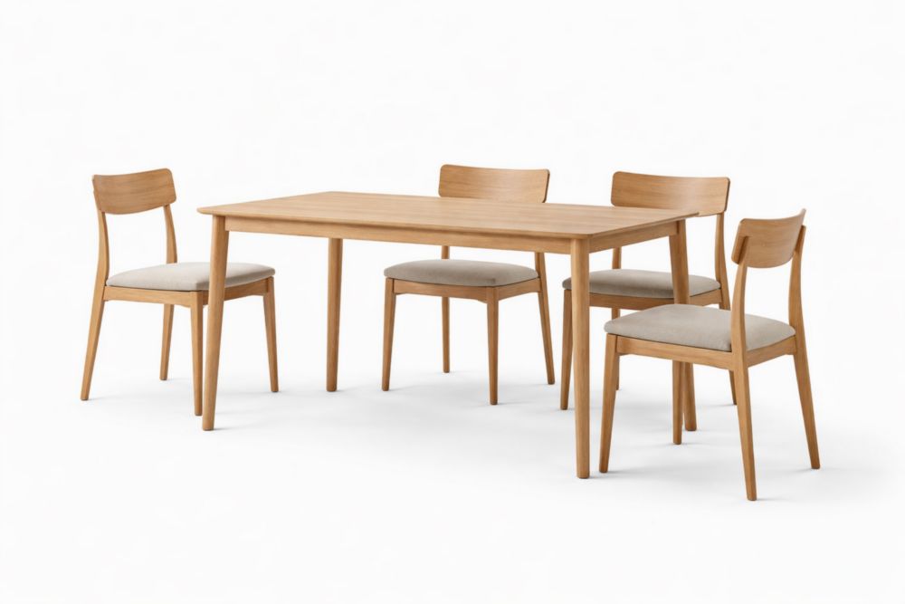 Solid Wood Dining Table Set with 4 Chairs Light Brown with Fabric Upholstery