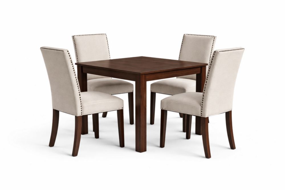 Square Solid Wood Dining Table Set with 4 Beige Polyester Chairs
