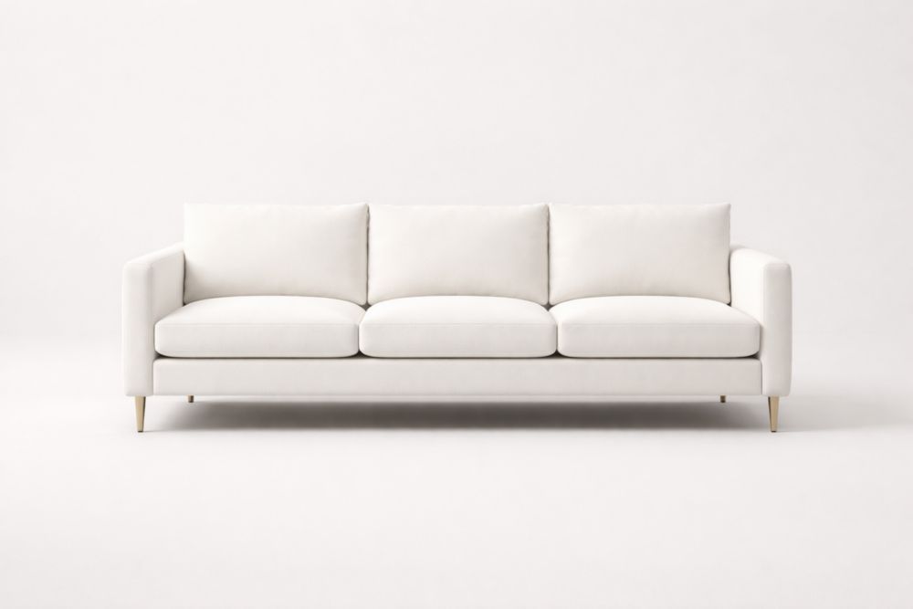 White Fabric Sofa with Gold Legs
