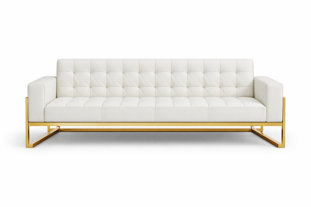 White Faux Leather Sofa with Gold Stainless Steel Frame