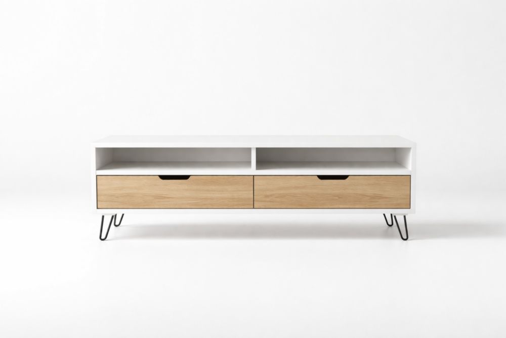 White MDF and Oak Veneer TV Stand with Steel Legs
