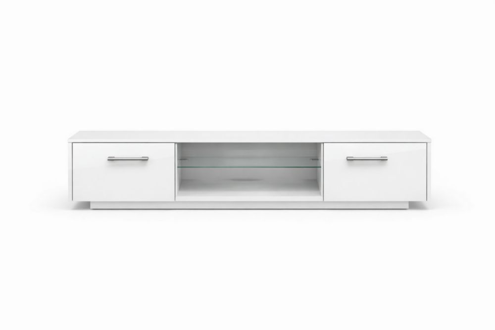 White MDF TV Stand with Glass Shelves
