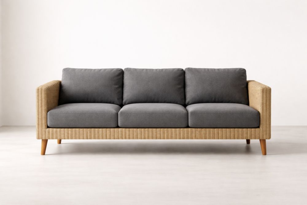 Wicker Frame Sofa with Grey Polyester Cushions