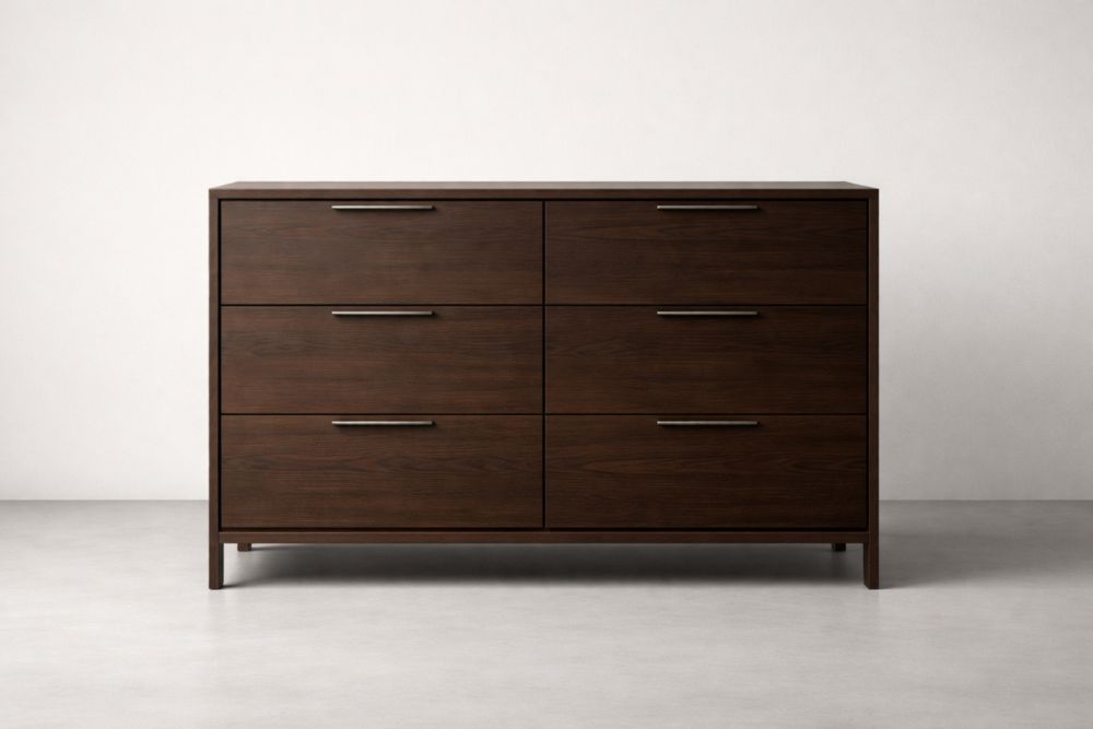 Wood Dresser with 6 Drawers Dark Brown MDF Veneer